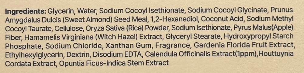 Textura caracteristică „mochi-like” este densă și cremoasă, transformându-se la contact cu apa într-o spumă ușoară și aerată, capabilă să curețe în profunzime fără frecare agresivă sau senzație de întindere a pielii. Această tehnologie asigură o curățare confortabilă și o exfoliere ușoară, facilitând absorbția eficientă a produselor aplicate ulterior în rutină.
