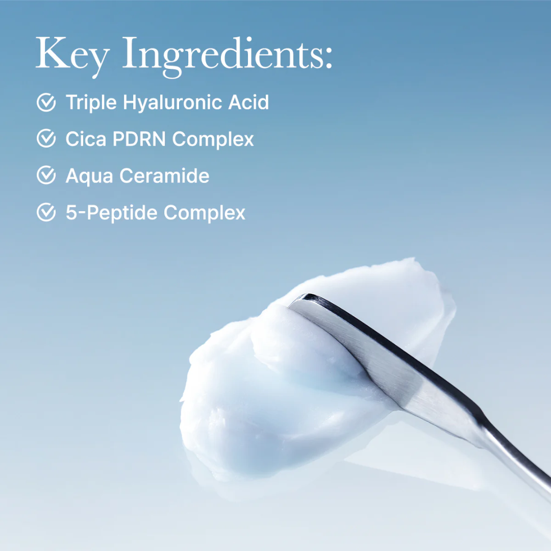Cremă de față cu 3 tipuri de acid hialuronic, 5 tipuri de peptide și niacinamidă este o cremă intens hidratantă și calmantă, creată pentru refacerea barierei cutanate și menținerea pe termen lung a nivelului optim de hidratare. Formula combină acid hialuronic, complexul Cica PDRN și ceramide, care acționează sinergic pentru hidratare profundă, calmarea pielii sensibile și sprijinirea proceselor naturale de regenerare.