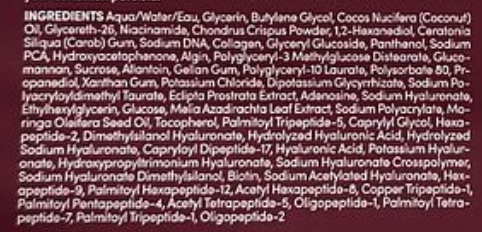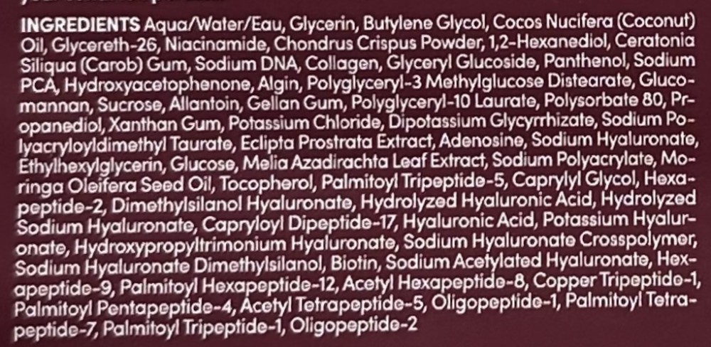 Formula este îmbogățită cu colagen cu greutate moleculară mică, care ajută pielea să arate mai fermă, netedă și vizual mai uniformă. Produsul conține, de asemenea, 13 tipuri de peptide care acționează sinergic pentru susținerea structurii pielii și a proceselor legate de menținerea elasticității.