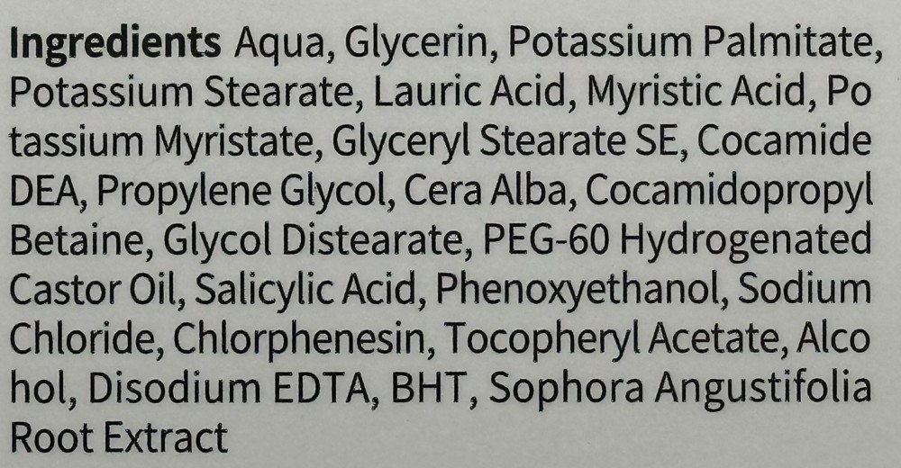 Formula conține 0,45% acid salicilic (BHA), care pătrunde în pori, dizolvă excesul de sebum și previne apariția punctelor negre și albe.