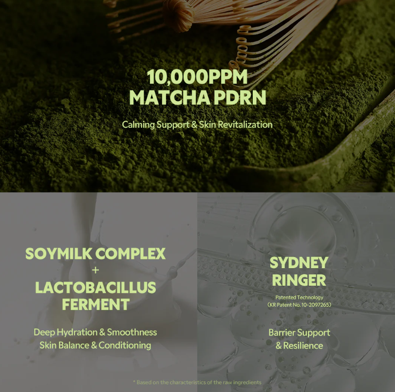 Tonerul facial cu PDRN vegetal, madecassoside, asiaticoside și ferment de lactobacillus este un produs testat clinic, creat pentru pielea sensibilă și predispusă la roșeață, oferind hidratare profundă și refacerea barierei cutanate. Formula este îmbogățită cu Matcha-PDRN (10.000 ppm) din insula Jeju – un polinucleotid cu greutate moleculară mică, care se absoarbe rapid, hrănește pielea și reduce vizibil roșeața și sensibilitatea. Tonerul are un pH ușor acid de 6.0, apropiat de pH-ul natural al pielii, pentru a restabili echilibrul după curățare fără a provoca iritații. Datorită tehnologiei Deep Absorbing Micro Dipping, formula este distribuită în particule ultrafine care pătrund uniform și eficient în piele. Conține Lactobacillus Ferment – un complex probiotic care susține microbiomul sănătos și protejează împotriva factorilor externi agresivi, în combinație cu Soymilk Complex pentru hidratare de lungă durată și hrănire. Complexul Sydney Ringer™ cu alantoină ajută la întărirea barierei cutanate și calmează pielea iritată. Formula este concepută pentru a combate roșeața, dezechilibrul pH-ului, deshidratarea, bariera slăbită și tenul neuniform. Produsul oferă rezultate vizibile încă de la prima utilizare – până la 49% reducere a roșeții și o creștere a hidratării cu 79,2%. Ajută la menținerea umidității în profunzime și întărește stratul protector natural al pielii. Calmează iritațiile și îmbunătățește confortul pielii sensibile. Contribuie la un aspect mai neted, proaspăt și uniform al tenului.