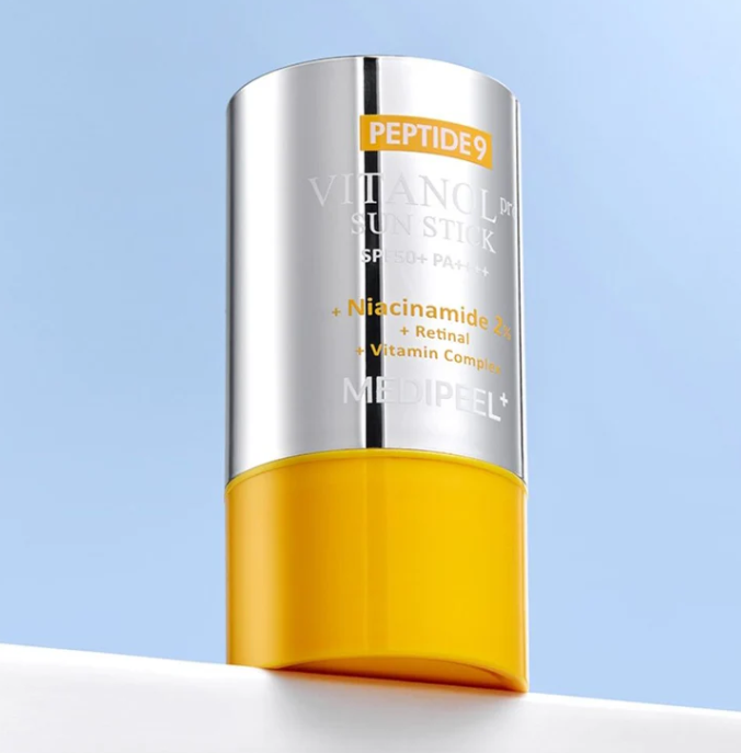 Слънцезащитен стик за лице с максимална UVA и UVB защита SPF 50+ PA++++, който съдържа 9 вида пептиди, ретинал, 2% ниацинамид, витамин Ц, пантенол и комплекс от витамини. Предлага защита от слънцето, предпазва кожата от преждевременно стареене и подобрява еластичността на кожата.