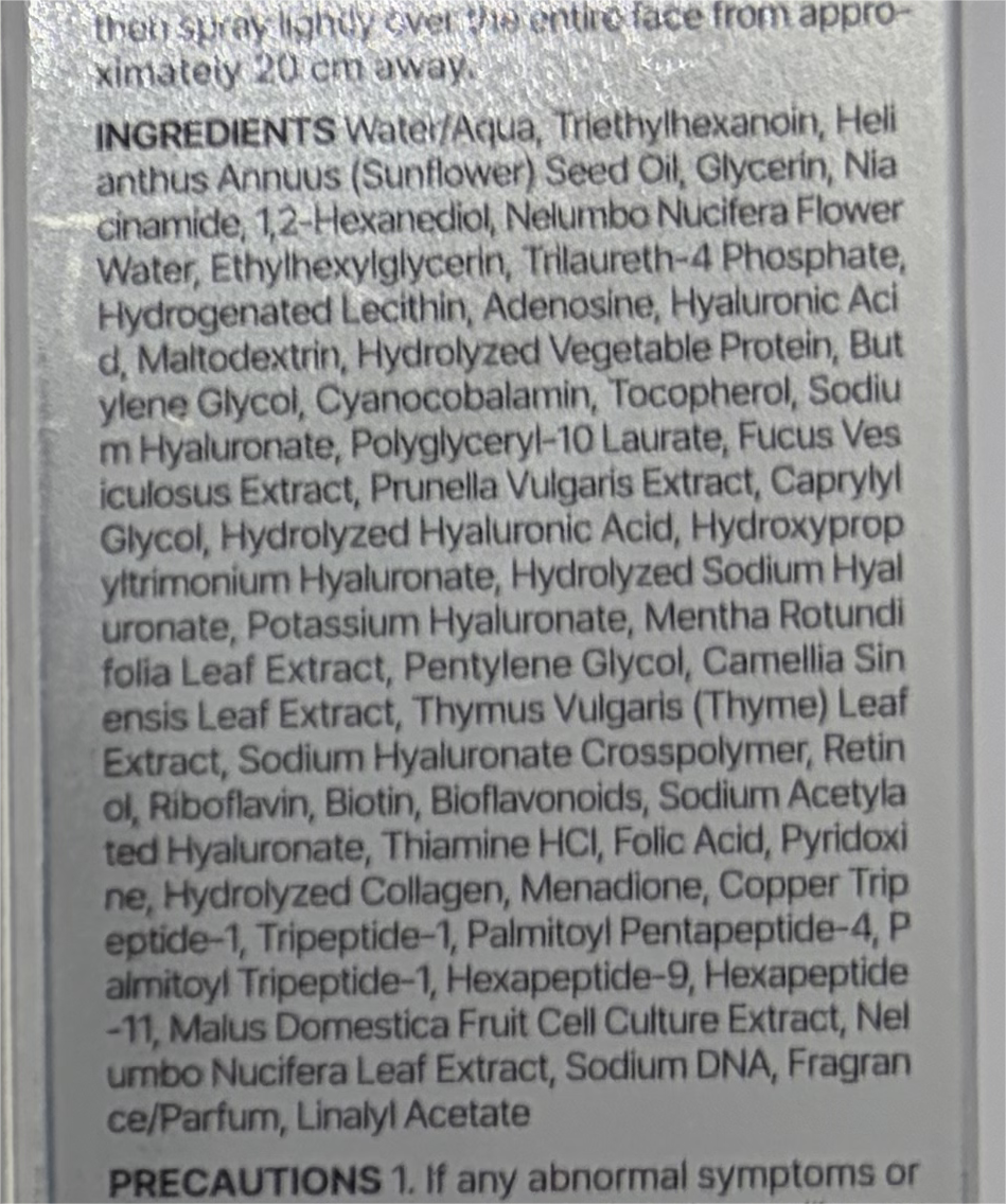Mist pentru față cu fito-exozomi, retinal, niacinamidă, cianocobalamină (vitamina B12), 6 tipuri de peptide și 9 tipuri de acid hialuronic combină cele mai noi tendințe în îngrijirea pielii pentru întinerire, hidratare și întărirea tenului. Acest mist extrem de fin și delicat este îmbogățit cu un complex puternic de ingrediente active, incluzând fito-exozomi, PDRN (polinucleotide), complex de peptide, acid hialuronic și vitamine, care acționează sinergic pentru a obține o piele mai fermă, mai elastică și mai luminoasă. Formula conține un amestec concentrat de Phyto Exosome & PDRN, care stimulează reînnoirea naturală a celulelor pielii și reduce semnele vizibile ale îmbătrânirii, precum liniile fine și pierderea de fermitate, pentru un aspect mai sănătos și mai revitalizat. PDRN (polinucleotidele) sunt cunoscute ca „elixirul tinereții”, deoarece susțin regenerarea și întărirea barierei cutanate, ceea ce duce la o rezistență mai bună și la protecție împotriva factorilor de stres externi. Complexul special de peptide activează sinteza colagenului și elastinei, îmbunătățește textura pielii și contribuie la un contur mai ferm și o suprafață mai netedă. Hidratarea multi-strat este asigurată de cele 9 tipuri de acid hialuronic, care rețin apa în diferite niveluri ale pielii, oferind o senzație de catifelare și confort fără greutate sau lipici. Textura ușoară, tip ceață, permite absorbția rapidă și eficientă a ingredientelor active, fiind ideală atât pentru rutina de dimineață, cât și pentru cea de seară, dar și pentru utilizare pe parcursul zilei pentru prospețime și hidratare suplimentară. În plus, produsul ajută la îmbunătățirea tonului și uniformității tenului, oferind un aspect natural și sănătos, rezultat al combinației eficiente de ingrediente active. Acest mist este potrivit pentru toate tipurile de ten și este o alegere excelentă pentru cei care își doresc o piele mai tânără, mai fermă și mai luminoasă la fiecare aplicare, integrându-se ușor în rutina zilnică, înainte de ser sau cremă.